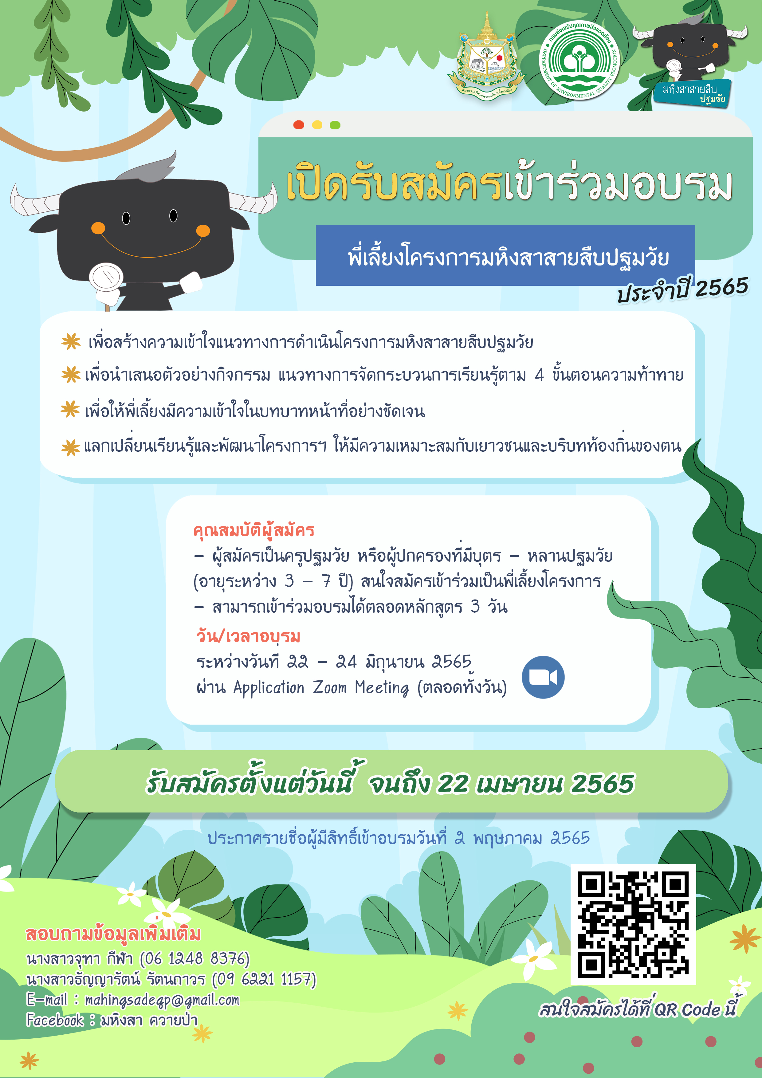ข่าวสาร / กิจกรรม > เปิดรับสมัครอบรมพี่เลี้ยงโครงการมหิงสาสายสืบปฐมวัย ประจำปี 2565